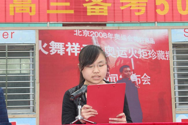 接下来高三学生代表发言。他们的发言道出了所有高三学子的心声。教师代表梁义琼老师的发言,慷慨激昂,催人奋进,让人警醒的讲话多次赢得了与会者经久不息的掌声,极大的鼓舞了同学们的斗志。