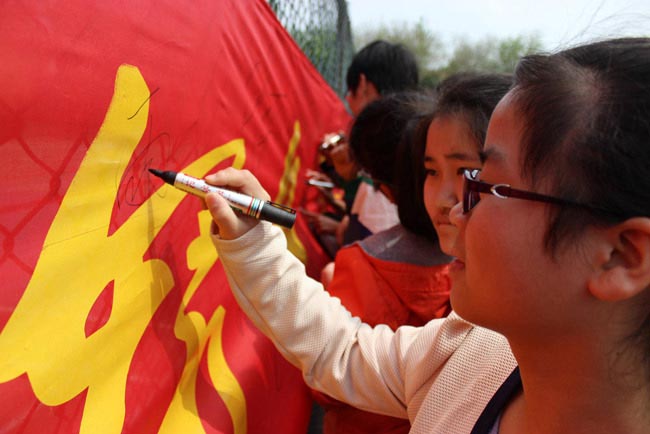 最后,周主任宣布大会最后一个议程,请同学们签名仪表决心。给同学们带来了莫大的鼓舞,使整个会场洋溢着高昂的斗志和必胜的信心。